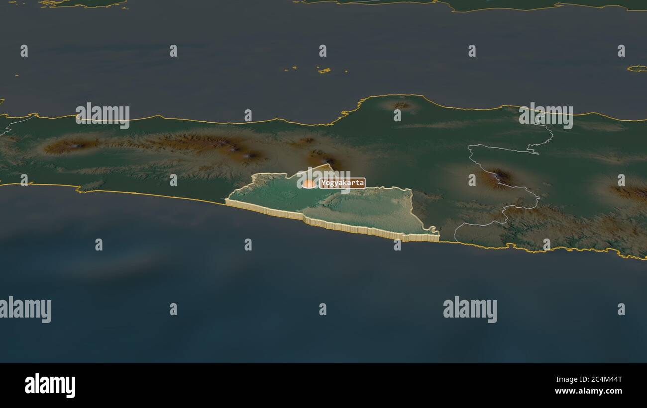 Zoom in on Yogyakarta (special region of Indonesia) extruded